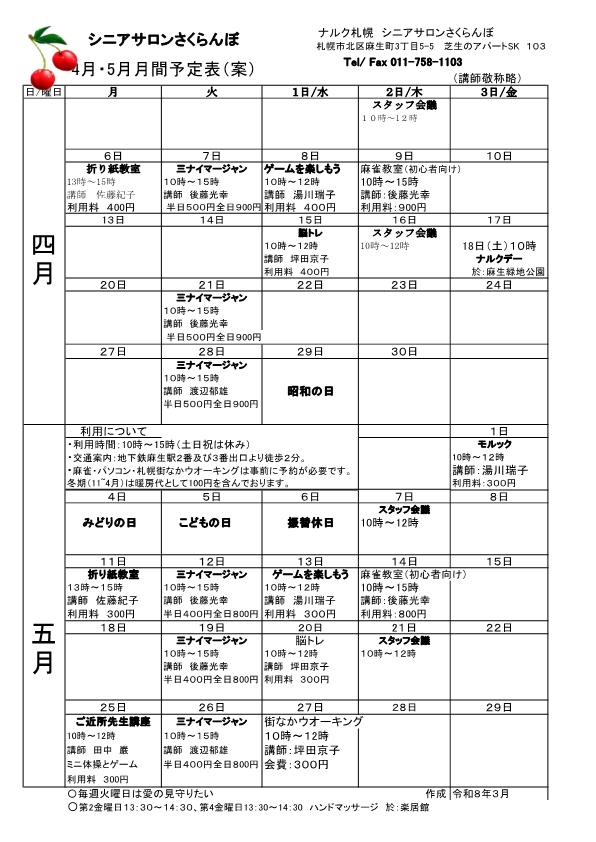 ナルク札幌さくらんぼ創立25周年動画